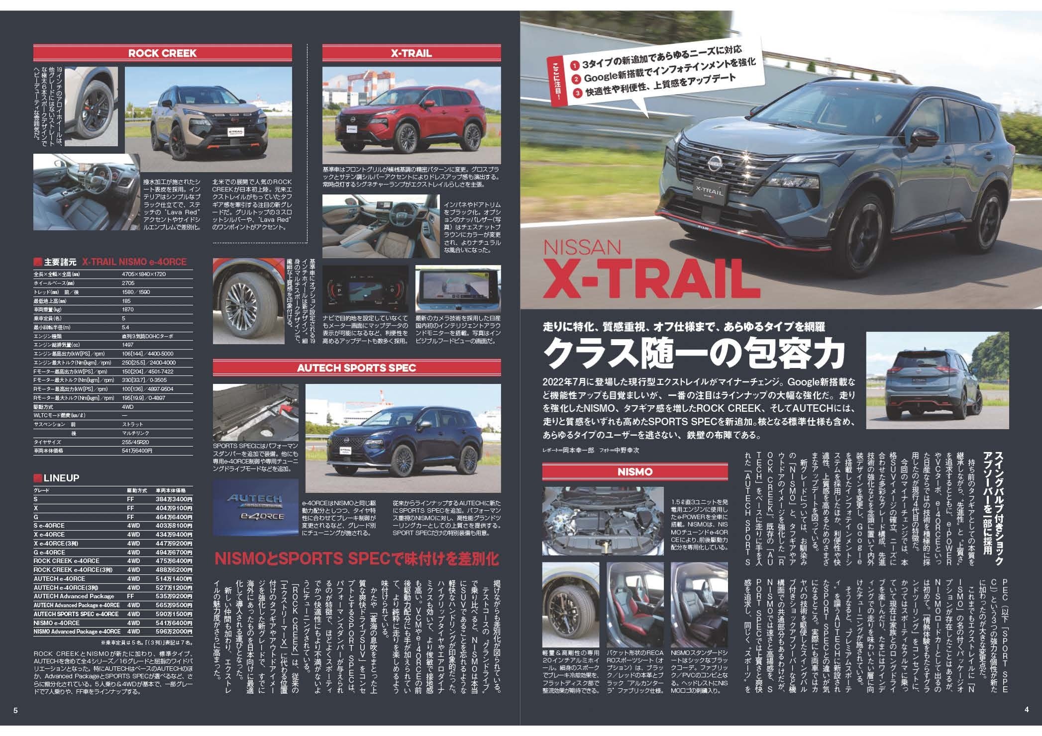 マイナーチェンジでNISMO、ROCK CREEK、AUTECH SPORTS SPECが追加され、大幅にバリエーションが充実した日産エクストレイルを紹介。