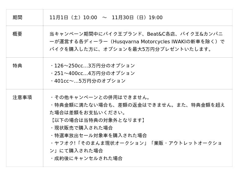 バイク王、「決算キャンペーン2025」を11月1日(土)より開催!