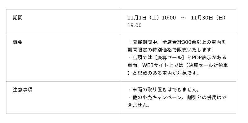 総台数300台の特選車販売など盛りだくさんの内容でお届け