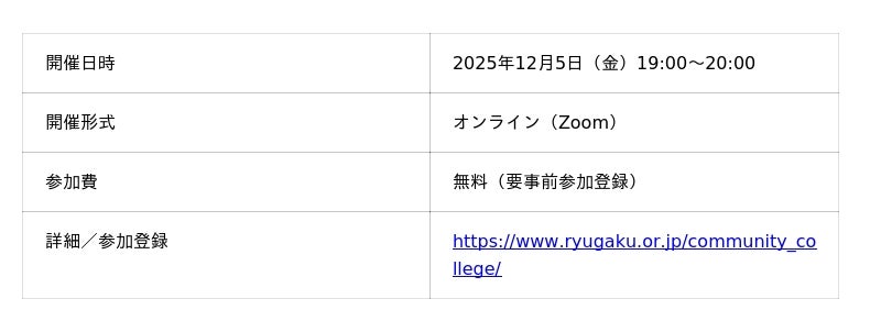Zenken株式会社(本社:東京都港区、代表取締役社長:林 順之亮、以下 Zenken)と業務委託契約を結んでいる一般財団法人 海外留学推進協会は、2026年入学希望者を対象にした「カリフォルニア大学編入を目指す!コミカレ説明会」を12月5日にオンラインにて開催いたします。