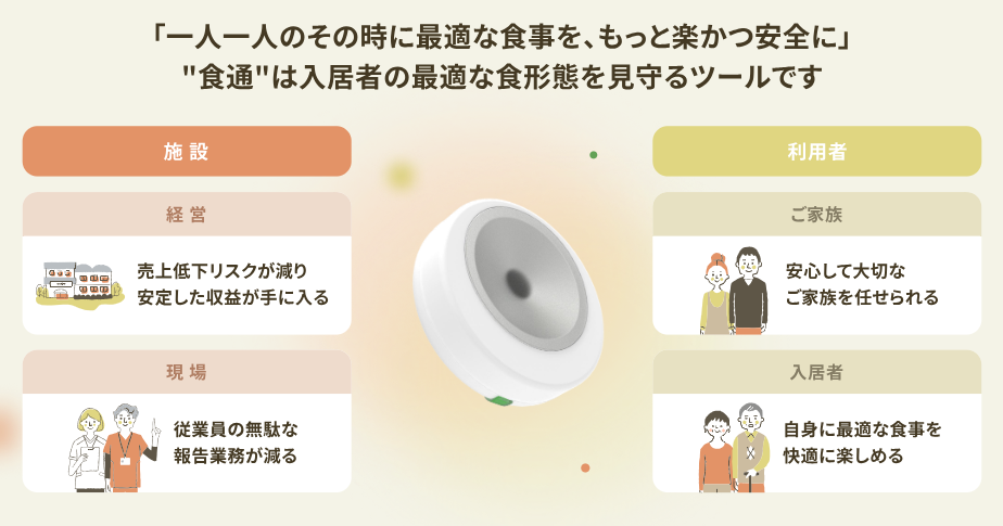 バイオソノ開発の小型デバイス『食通(ショクツー)』がもたらす施設・利用者への価値