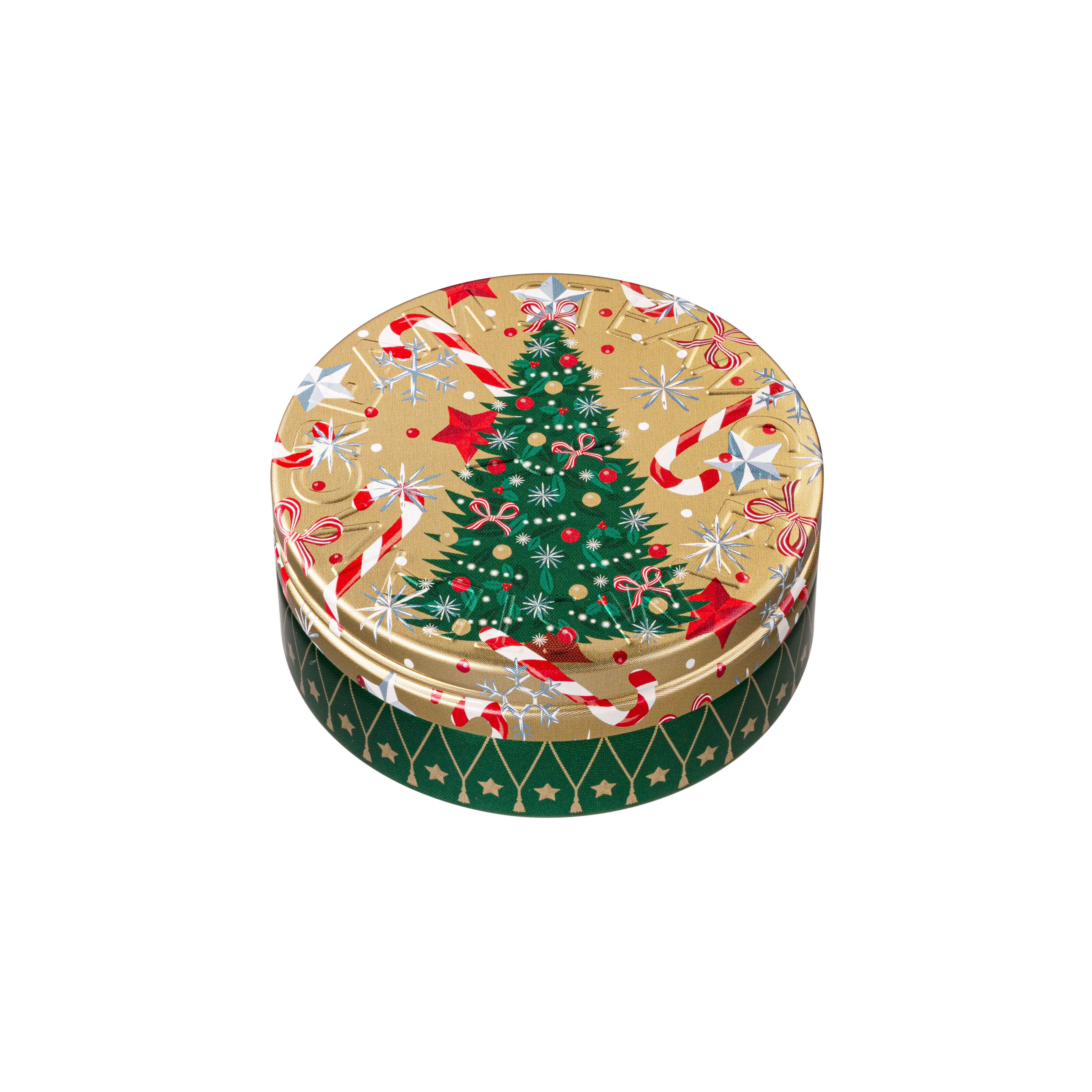 満天の星がきらめく冬の夜。雪の結晶が舞い降り、クリスマスツリーの枝にそっと降り積もると、まるでツリー自体が輝き出すように光を放つ。ゴールドの背景に映える深いグリーンのツリーは、神秘的でありながら、どこか温かさを感じさせる。赤と白のリボンが軽やかに舞い、クリスマスの華やかさを添えます。静寂の中で、雪が舞い、氷の煌めきが心に響く、幻想的なクリスマスの風景を閉じ込めたデザインです。