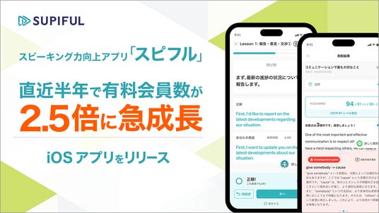 英語学習プラットフォームの株式会社プログリット(本社:東京都千代田区有楽町、代表取締役社長:岡田 祥吾、証券コード:9560)が提供する、スピーキング力を向上させるサブスク型英語学習サービス「スピフル」は、2025年3月18日、iOSアプリをリリースしたことをお知らせいたします。AIを活用した学習機能により、個々人の苦手箇所にアプローチしたトレーニングを実現し、直近半年で有料会員数は2.5倍に増加。iOSアプリのリリースにより、今後さらに多くの英語学習者のスピーキング力向上をサポートしてまいります。