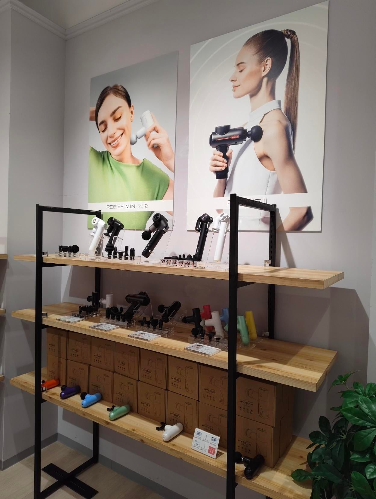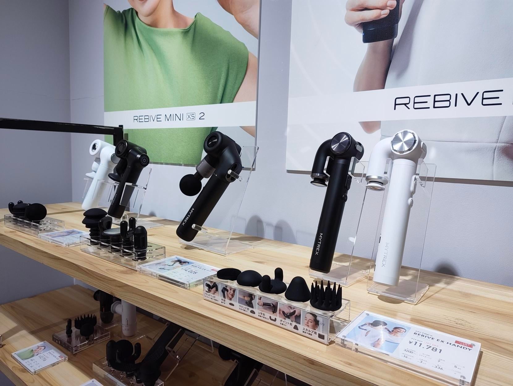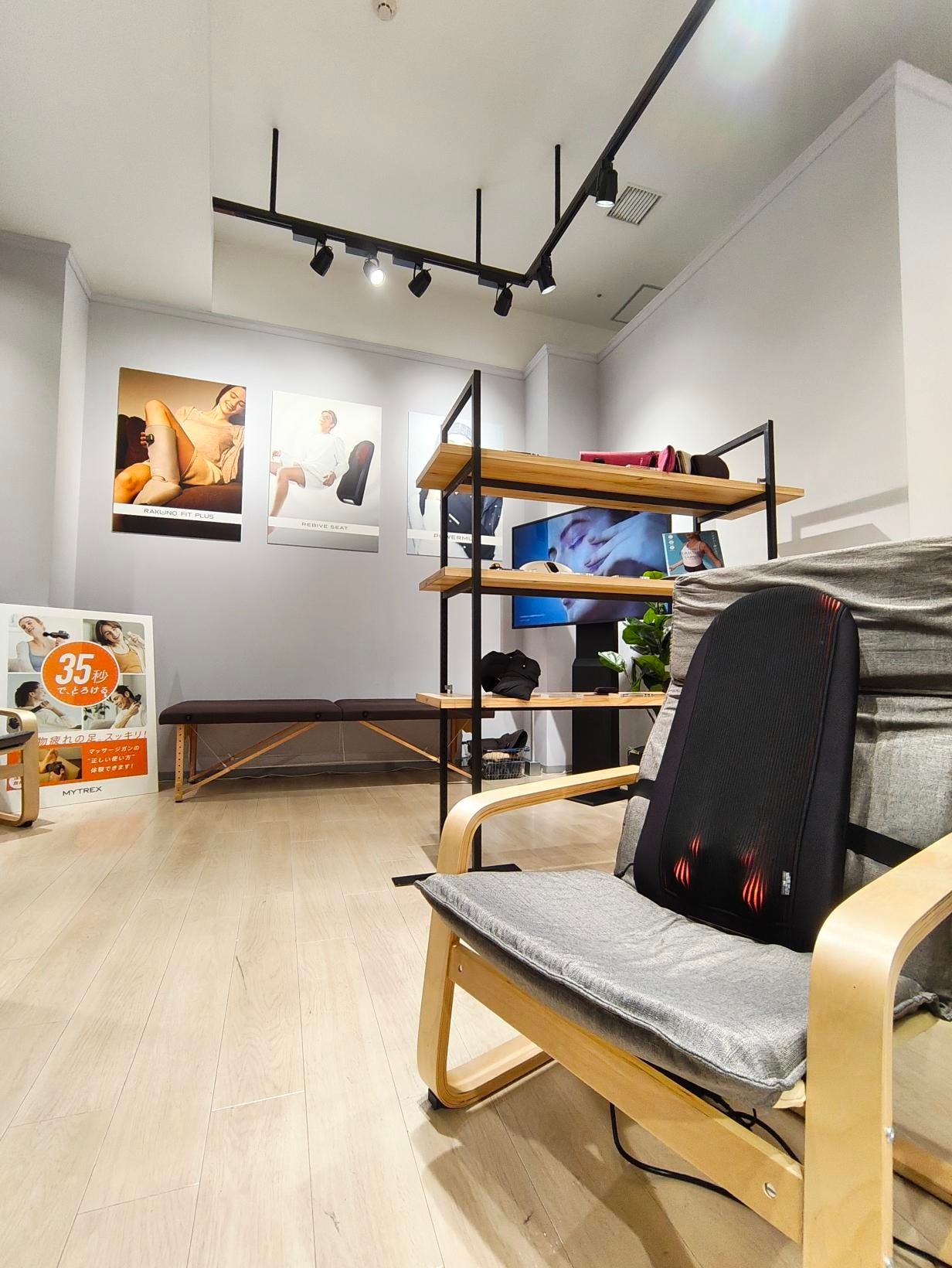 本ストアでは、実際に製品を無料体感できるリラクゼーションルームを併設。ブランドを象徴する「REBIVEシリーズ」のマッサージガンをはじめ、首をあずけるだけで心までほぐれるEMSネックストレッチャー「MEDI NECK(メディネック)」、足元から一日の疲れをケアする温熱ふくらはぎケア「MYTREX RAKUNO FIT(マイトレックス ラクーノフィット)」など、MYTREXが大切にしてきた“習慣に溶け込むセルフケア”を体感いただけます。