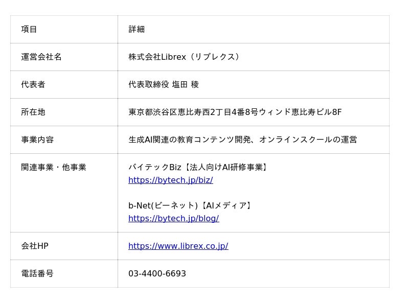 株式会社Librex(リブレクス)(本社:東京都渋谷区、代表取締役:塩田 稜、バイテック生成AIオンラインスクール運営)は、Googleの次世代AI「Gemini」を中心とした総合講座「Geminiマスター講座」を新たに開講しました。