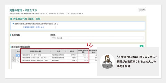 ・特長2:「e-reverse.com」に登録されたマニフェスト情報が実施書に自動反映