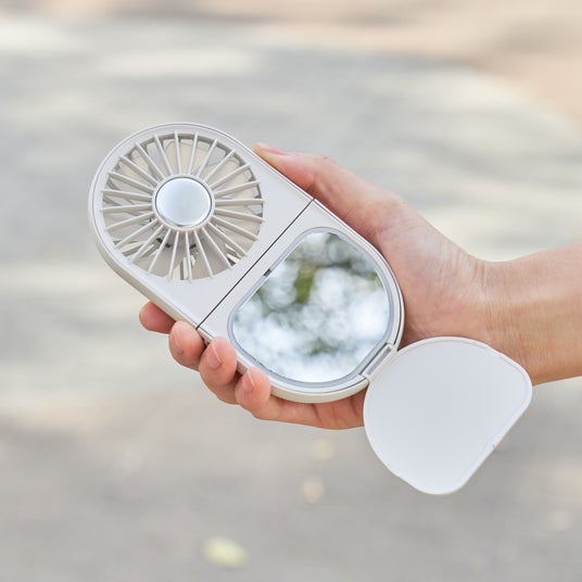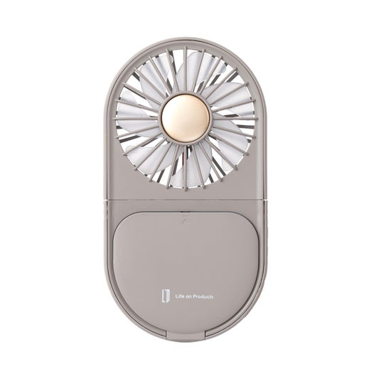 上部にファン、下部にライト付きミラーを搭載。スマホスタンドとしても使えます。