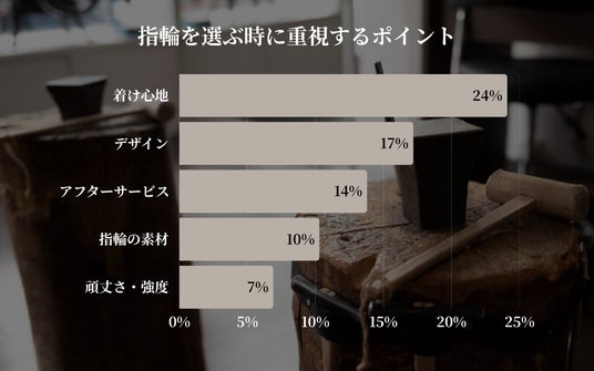 指輪を選ぶ際に最も重視されたのは「着け心地」で、24%を占めました。
