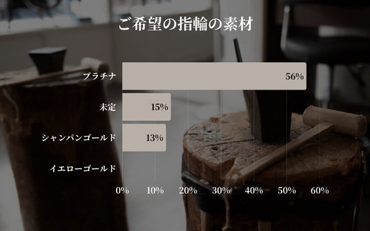 指輪の素材として「プラチナ」が圧倒的な人気を誇り、過半数の56%を占めています。