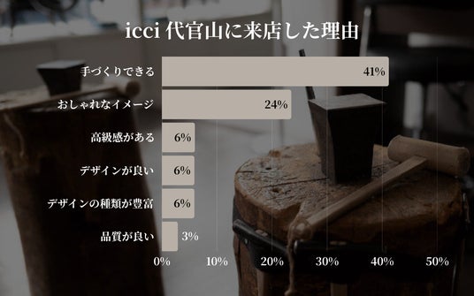 「高級感がある」「デザインが良い」「デザインの種類が豊富」といった要素はそれぞれ6%であり、これらの要素も来店理由の一部として認識されていたことがわかりました。