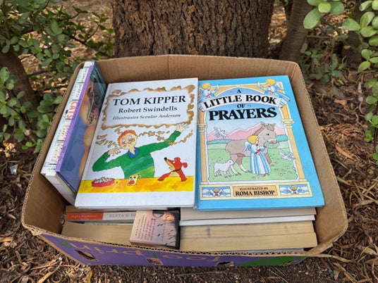 寄贈された英語児童書。今後「移動図書館車」に乗せて、南アフリカの子どもたちのもとへ届けられます。