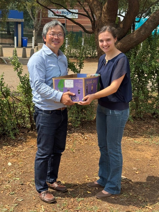 今回の寄贈は、プレトリア大学教育学部の学生であり、学生団体「The Inkligs Society」の代表を務めるリゼル・ゴードン氏を中心とした学生有志によって行われたものです。同団体は2024年より、英語の図書を収集しSAPESIに寄贈する活動を継続的に行っており、今回も多数の良書をご提供くださいました。