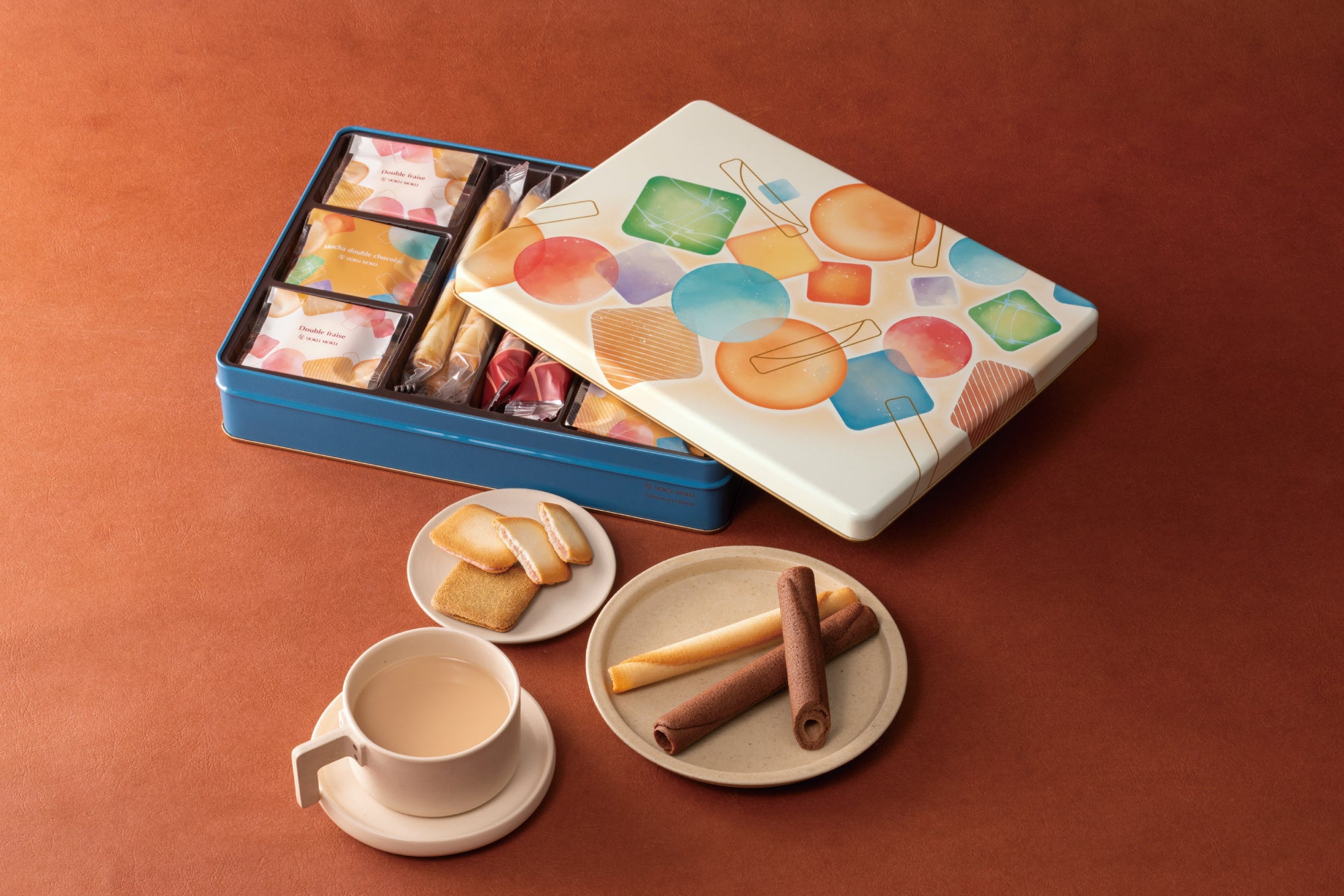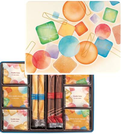 フランス語で「とてもおいしい焼き菓子」を意味する「ガトー エクセラン」。パッケージのテーマは『クッキーパーティ』。クッキーの焼き色や、シルエットの美しさを感じられるようデザインしました。カラフルな色合いの缶を開ければ、ヨックモックの代表作「シガール(R)」をはじめ、個性豊かなクッキーが入っています。
