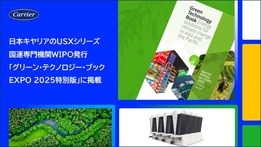 日本キヤリア株式会社(Carrier Japan Corporation: 本社:東京都品川区)は、同社の空冷モジュールチラー/ヒートポンプ「Universal Smart X(USX)シリーズ」が、世界知的所有権機関(WIPO)によって発行された報告書「グリーン・テクノロジー・ブック EXPO 2025特別版」に掲載されたことを発表しました。権威ある同報告書は、EXPO 2025大阪で開催された公式イベントにて発表され、アジア太平洋地域から選ばれた200以上の革新的なエネルギー技術を紹介しています。