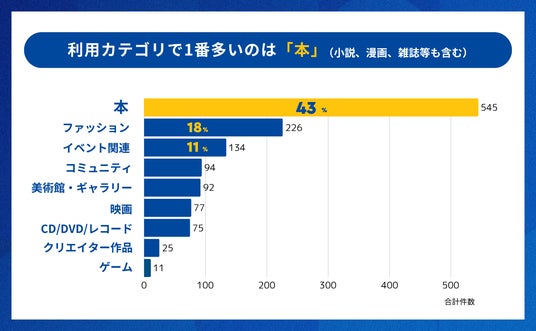 ・1番多く利用されているカテゴリは「本」(小説、漫画、雑誌も含む)で約42%