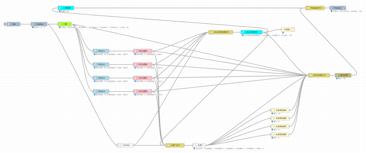 当社の技術者が水の利用状況を入力することで、工場全体の水の流れや再利用量を即時に可視化します。様々なパターンを入力すると、回収率に加え、取水や排水など水利用にかかるコストのシミュレーション結果がリアルタイムで表示されるため、工場用水の効率的な利活用の検討期間短縮が可能になります。