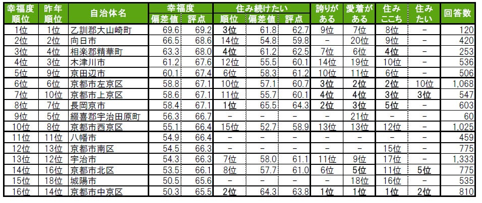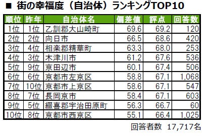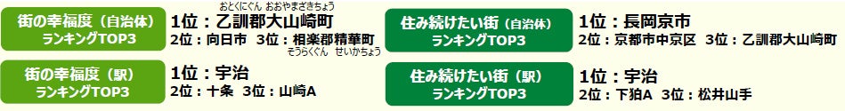 ■街の幸福度(自治体)トップは、5年連続で乙訓郡大山崎町(おとくにぐん おおやまざきちょう)