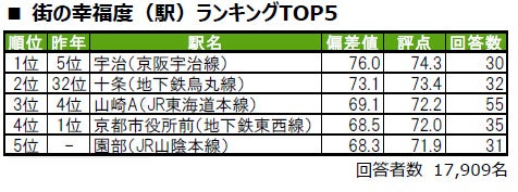 ■街の幸福度(駅)トップは、昨年5位から順位を上げた宇治