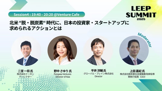 - Session4:北米“脱・脱炭素“時代に、日本の投資家・スタートアップに求められるアクションとは