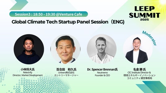 CIC Institute(本社:東京都港区虎ノ門、創業者兼CEO ティム・ロウ、以下「 CIC 」)が、環境エネルギー分野のイノベーション創出を加速するため、U3 イノベーションズ合同会社と共同で運営する、環境エネルギーイノベーションコミュニティ(以下「E&Eコミュニティ」という。)は、2025年12月3日(水)に日本最大級の環境エネルギーイノベーションの祭典、「LEEP SUMMIT 2025 」を開催します。
