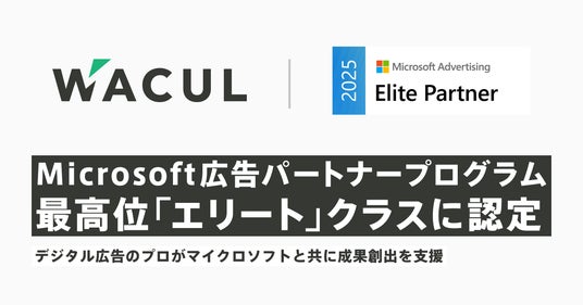 データと知見を核に、戦略から実行までマーケティングDXを一気通貫で支援する株式会社WACUL(住所:東京都千代田区、読み:ワカル、代表取締役社長:大淵 亮平、証券コード:4173、以下当社)は、日本マイクロソフト株式会社(本社:東京都港区、以下 マイクロソフト)が2025年1月に日本でスタートした「Microsoft 広告パートナー プログラム(以下、本プログラム)」において、最高位の「エリート」クラスに認定されたことをお知らせします。