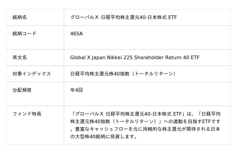 Global X Japan株式会社「グローバルX 日経平均株主還元40-日本株式 ETF」【465A】東京証券取引所より上場承認
