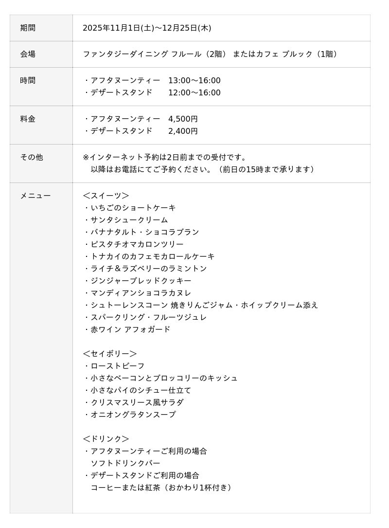 アフタヌーンティー・デザートスタンド「Gift of Christmas」概要