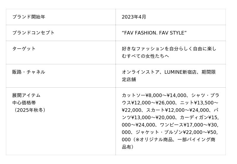 “FAV FASHION. FAV STYLE”をコンセプトに、好きなファッションを自分らしく自由に楽しむすべての女性たちへ向けて、枠にとらわれないスタイルを提案します。
