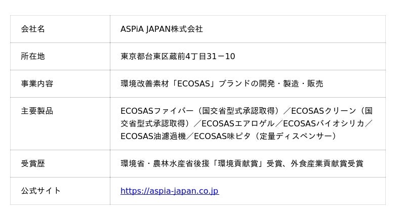 環境貢献賞受賞・国交省型式承認「ECOSAS」ASPiA JAPAN、東京都選抜企業としてMETALEX Thailand 2025へ海外初出展