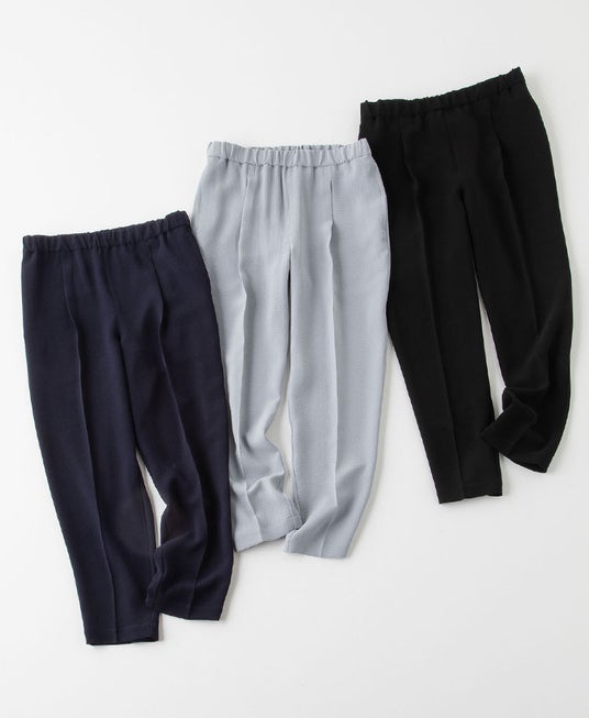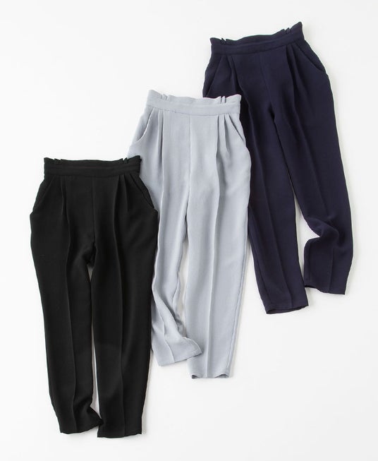 パンツはトップスに合わせて、腰まわりにゆとりをもたせたテーパードシルエットに。ワンタックを施した現代的なデザイン性と快適性を両立したデザインです。