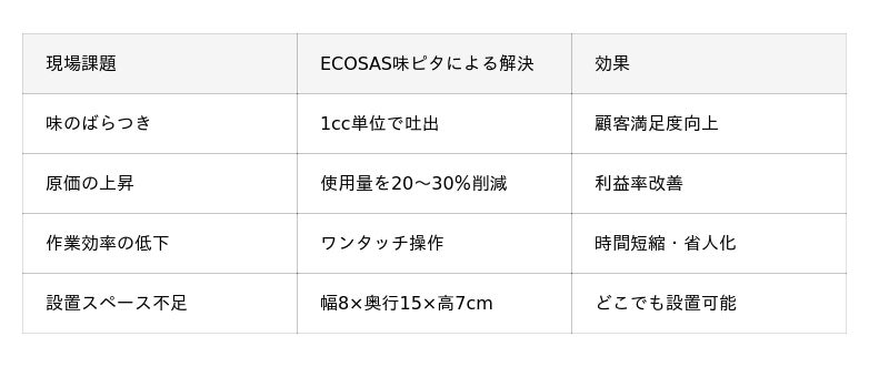 飲食業界の“味のばらつき”をゼロに!1cc単位の定量吐出ディスペンサー「ECOSAS味ピタ」新登場