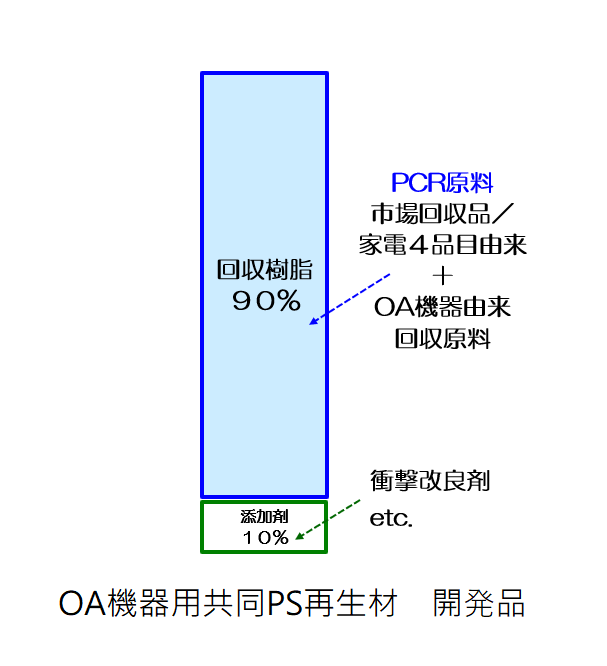 一般社団法人 ビジネス機械・情報システム産業協会(東京都港区、会長 沖津雅浩、以下JBMIAという)は、樹脂コンパウンドメーカーと共同で、複写機やプリンタ等の各社OA機器に使用可能なポリスチレン(以下PSという)再生プラスチックを開発し、今年度より順次、各社の製品への搭載検討を開始します。