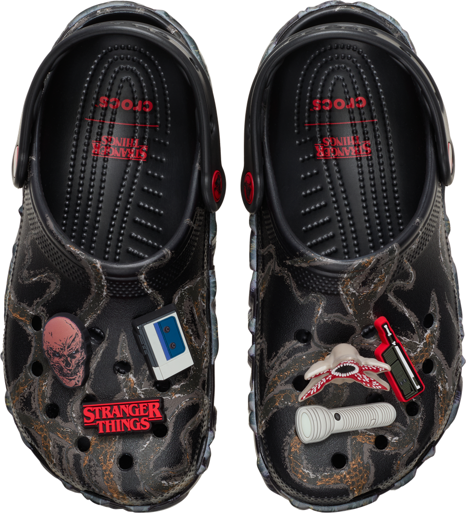 SFホラーとしてのスリリングさとノスタルジックな雰囲気のある、「ストレンジャー・シングス 未知の世界」は世界中で愛されているNetflixの人気作品です。今回、クロックスと初めてタッグを組み、ファンなら誰しもが欲しくなる魅力的なアイテムができました。ホーキンスの不気味な町や、奇妙な出来事がよみがえってくる、あの世界での体験を足元から感じてみてください。