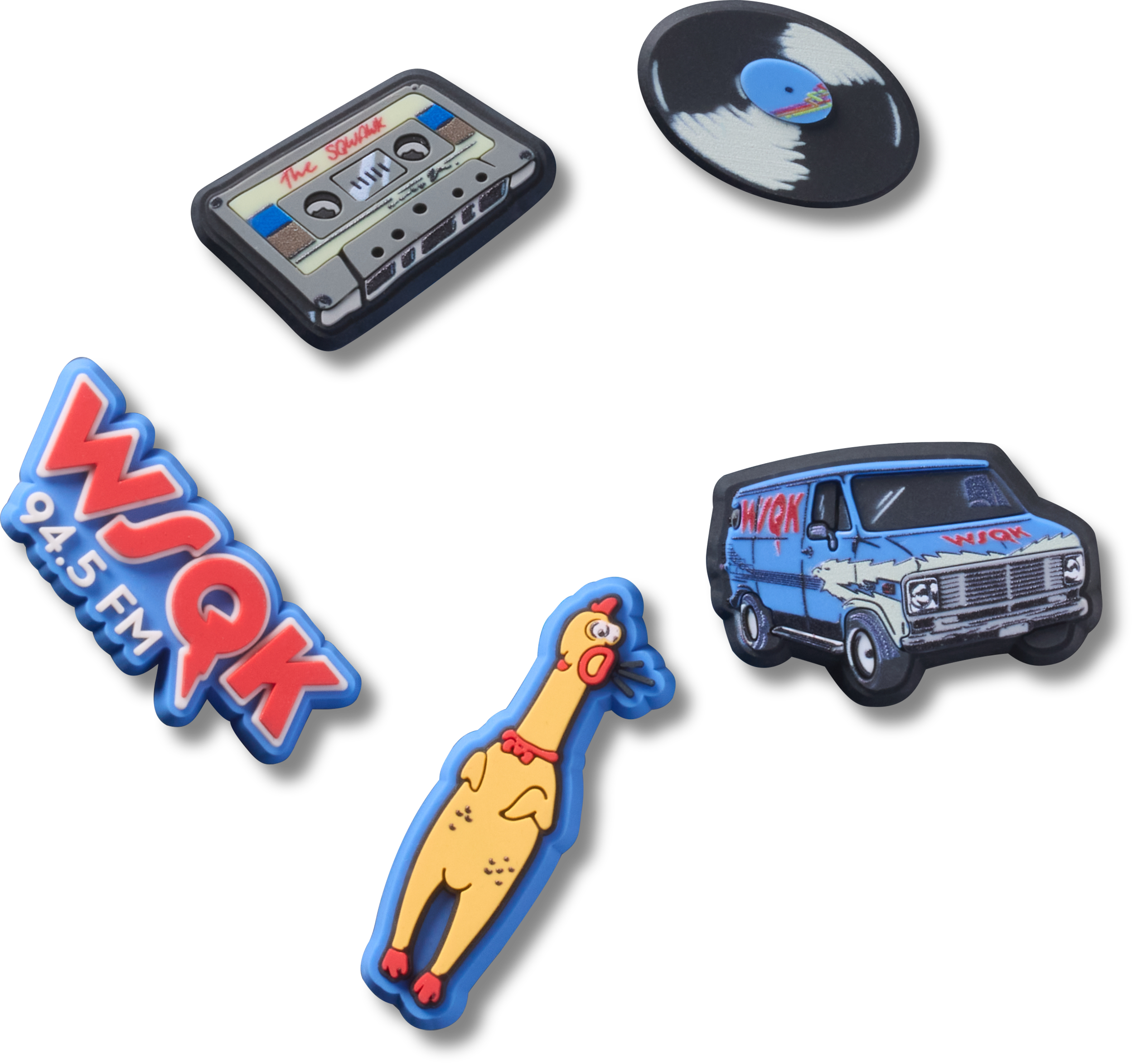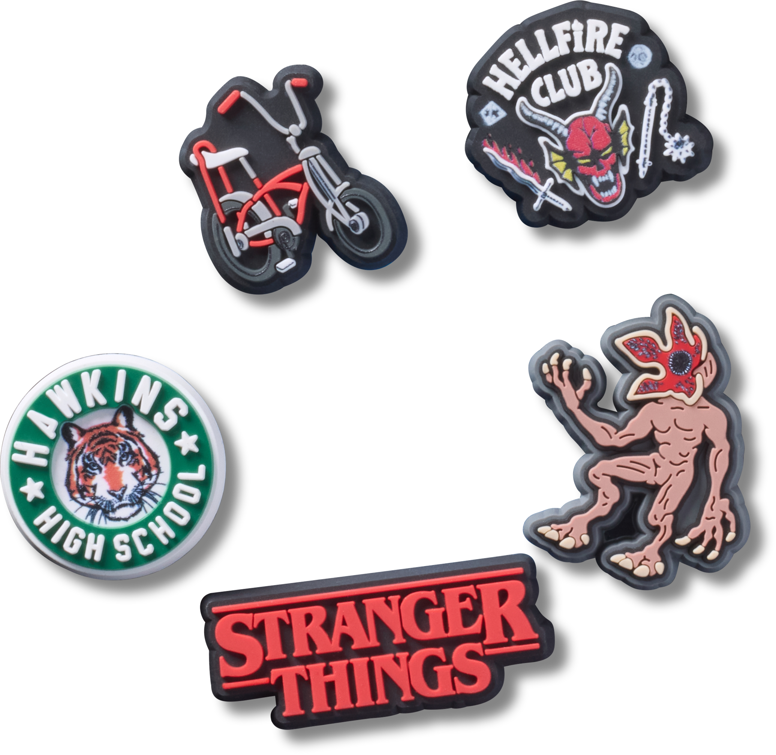 今回ジビッツ(TM) チャームのセットも販売いたします。「ネットフリックス・ストレンジャー・シングス 5パック」はストレンジャー・シングスのロゴやデモゴルゴンをモチーフにしたダークなアイテムとなっています。また、「ストレンジャーシングス スクウォーク5パック」にはWSQKラジオ局をモチーフとしたノスタルジーな雰囲気のジビッツ(TM) チャームとなっています。自由にカスタマイズでき、自分だけのスタイルを作る楽しさもクロックスの魅力の一つです。