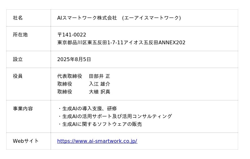 ▼AIスマートワーク Webサイト : https://www.ai-smartwork.co.jp/
