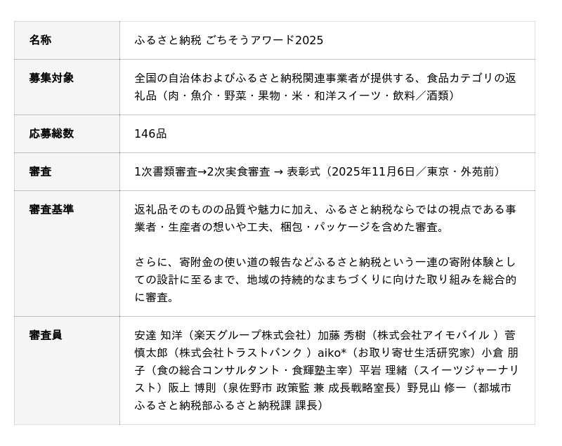 今後も本アワードでは、返礼品を通じた体験設計や地域への想い、丁寧なものづくりに込められた努力と工夫を応援してまいります。