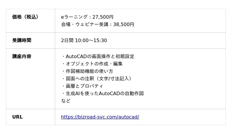 人気セミナー「AutoCAD基礎セミナー」に生成AIによる自動作図の情報を追加!