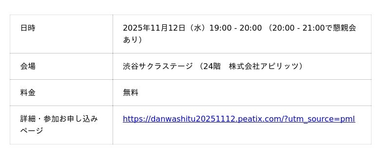 株式会社アピリッツは、2025年11月12日(水)、「【一人目デザイナーから、組織を動かすリーダーまで】プロジェクトを成功に導くサービスデザイン談話室」を開催いたします。