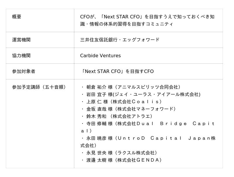 ~三井住友信託銀行、エッグフォワード、Carbide Venturesが共同で運営する次世代CFO育成コミュニティに2年連続登壇~