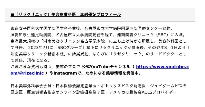 リゼクリニック 赤岩優妃医師