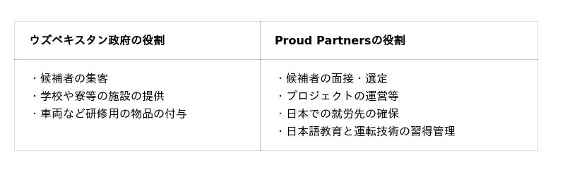 ウズベキスタン政府とProud Partnersの役割分担