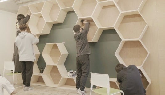 本学の「OECUまづくり研究会」の学生が、共用スペースの1つである「キュウカンサ」の使われ方検討を基にしたデザイン提案からDIY施工までを担当。MUJI HOUSEの設計担当者との意見交換を重ね、地域の声を反映した空間を作り上げました。壁面本棚等の製作は大学内の施設で行い、現場での取付施工も学生自らの手で行うなど、企画から実装まで実践的に取り組みました。