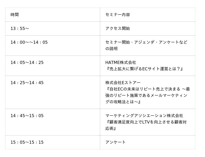 ■ セミナースケジュール及び内容