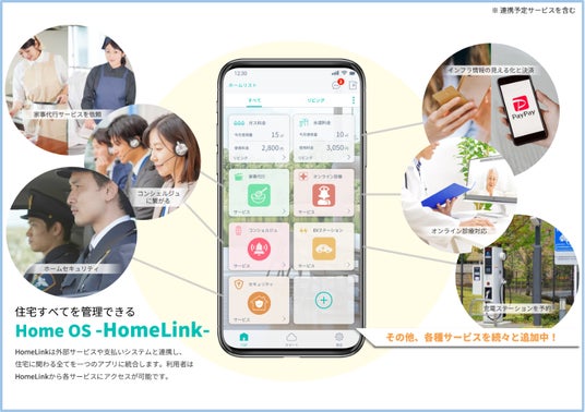 「HomeLink」を住宅に導入することにより、家電や建具の管理・操作、エネルギーマネジメント、ヘルスケアサービス、在宅介護・オンライン診療などを自宅の機能として追加し、ライフスタイルに合わせて住宅をアップデートできるようにすることで、100年住宅の実現を目指します。