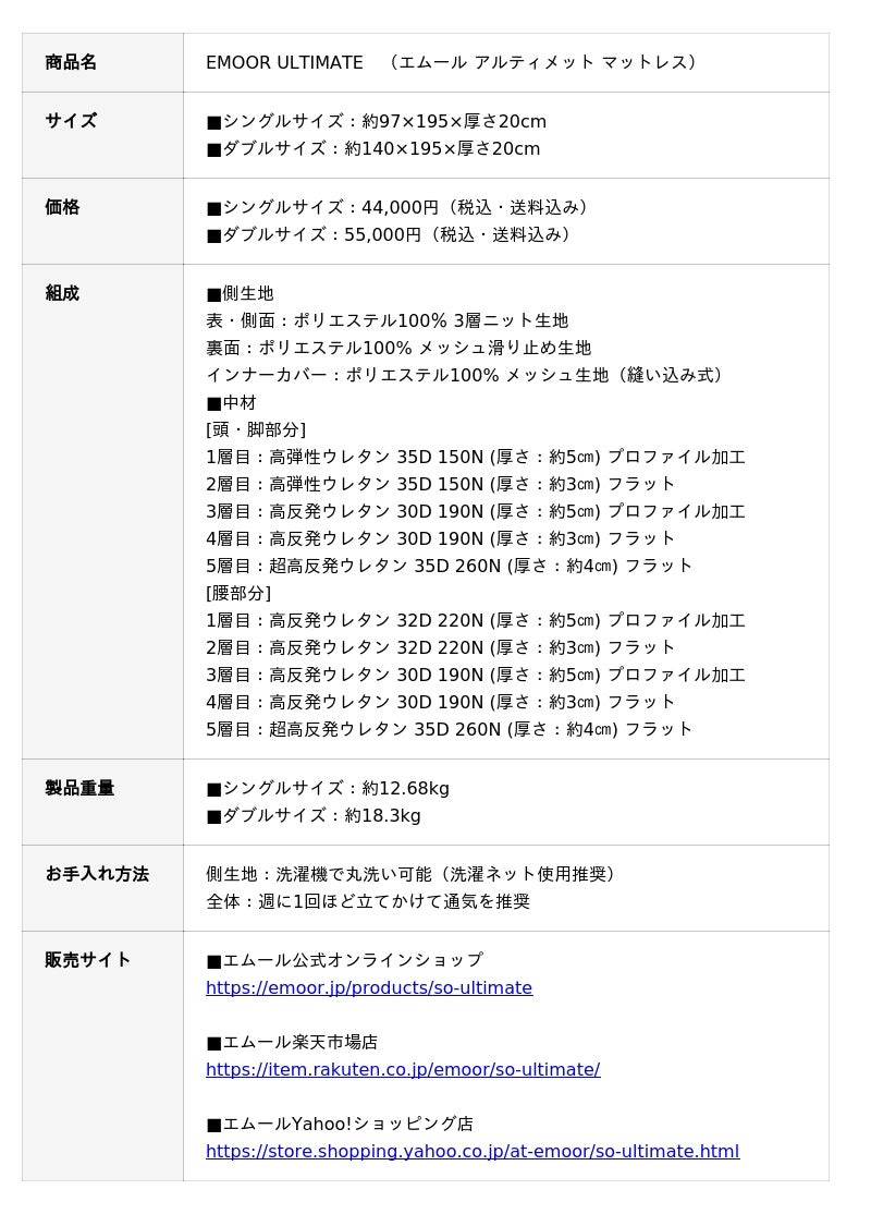 エムールアルティメットマットレスは、