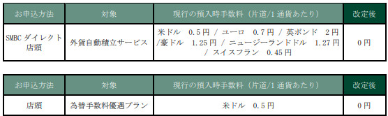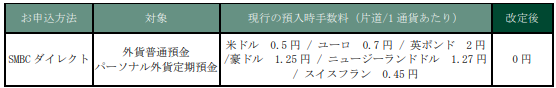 SMBCダイレクトでの外貨普通預金・パーソナル外貨定期預金における円からの預入時の為替手数料を無料化します。