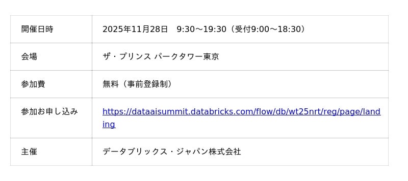 本イベントは、業界リーダーが選ぶ Databricks を活用したデータ・分析・AI アーキテクチャの統合と簡素化の方法を学べる貴重な機会です。<イベントの見どころ>