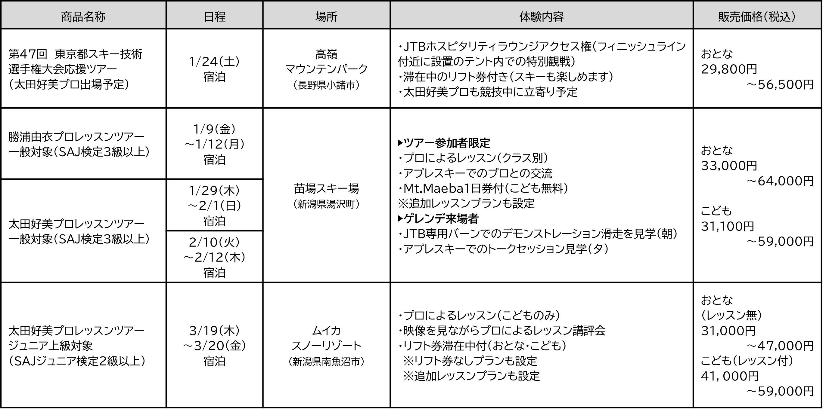 ・現役プロの技術をスキーシーズンに直接学べる貴重な機会を創出
