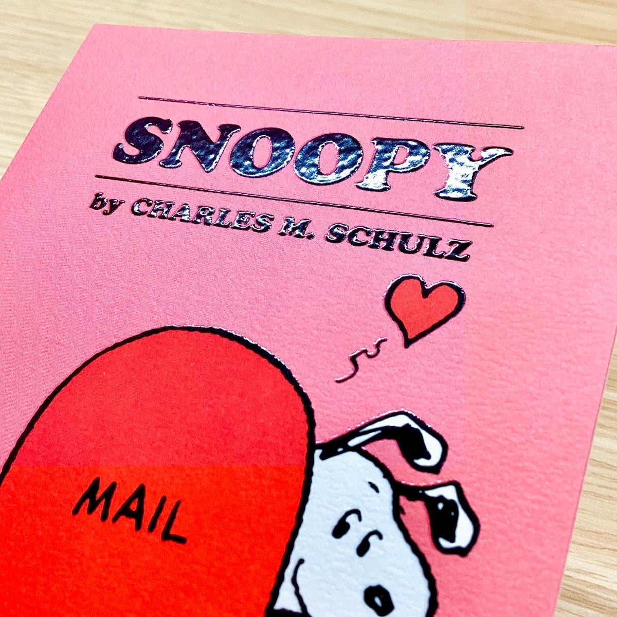 コレクションにぴったりのポストカード。ぷっくりとしたUV加工がアクセントになっています。裏面にもスヌーピーのアートが描かれており、表裏どちらも楽しめる可愛らしいデザインです。