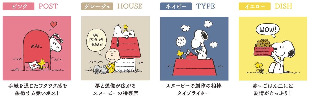 【ピンク】POST 手紙を通じたワクワク感を象徴する赤いポスト【グレージュ】HOUSE 夢と想像が広がるスヌーピーの特等席